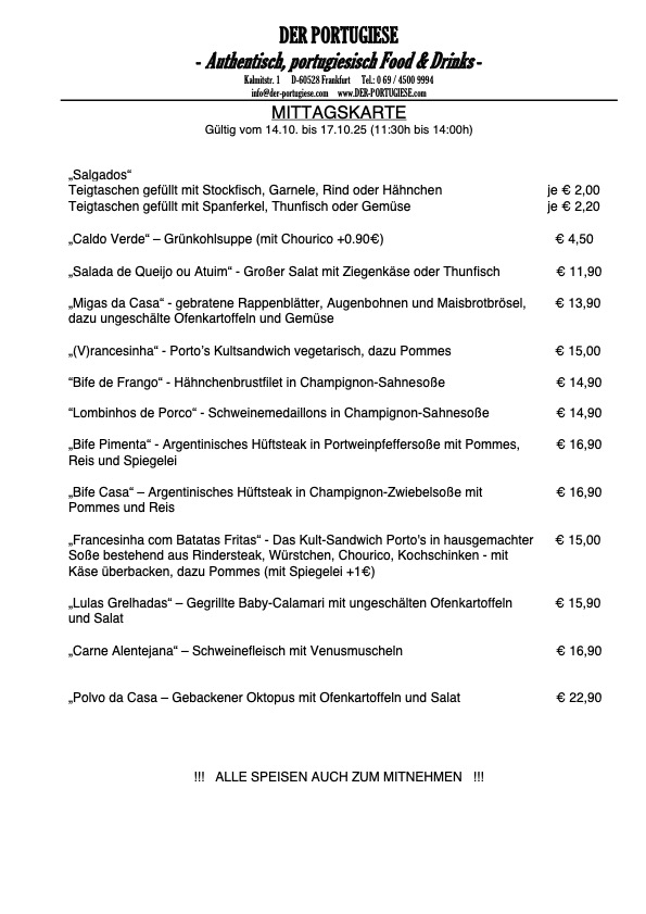 Hier sehen Sie unsere Mittagskarte, jeweils gültig von Dienstag bis Freitag in der Zeit von 11h30 bis 14h00.